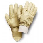 Guante con gran impermeabilidad. Flor vacuno tratado hidrófugo color arena. Puño elástico con protector arterial.