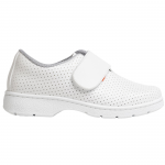 Zapato hiper ventilado y altamente transpirable, perforado en su totalidad y sin costuras interiores, con cierre de velcro y lavable hasta 40º. Fabricado con microfibra D’COVER OEKO-TEX® de alta absorción de humedad, acolchado D’DRY® en la zona del tobillo y horma recta fisiológica. Cuenta con plantilla antibacteriana de poliuretano y carbón activado, y suela antideslizante con resaltes para evacuación de líquidos y mayor adherencia.