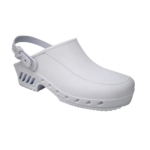 Certificación CE: Este zueco es un equipo de protección personal conforme a los requisitos de los zapatos de trabajo. Ligero: Peso promedio de 600 gramos por par. Zueco aireado: Los orificios laterales proporcionan ventilación pero evitan que los líquidos caigan desde una altura. Anatómico: Respeta la anatomía natural del pie. Antichoque: Máxima absorción de energía en la zona del talón. Antideslizante: El diseño único de la suela cumple con los requisitos SRC en cuanto a resistencia al deslizamiento. Antiestático: Elemento antiestático sin marcas en la zona del talón, eficiente incluso después de varios lavados. Lavable a máquina hasta 90°C y esterilizable hasta 134°C. Resistente a las esterilizaciones químicas o con rayos ultravioleta comunes en hospitales. Antibacteriano, Antimoho, Antihongos.